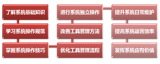 工装及刀夹量具管理系统使用便捷,车间管理人员、工艺人员、质检员和库管员等通过培训,可迅速掌握相关系统使用技巧和传授系统的实际应用经验。从而让企业的Tracker 系统运行更加流畅,使企业对刀夹量具及工装的管理更加高效和实用。